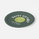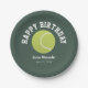 Green background tennis ball themed personalised paper party paper plates, for birthdays or any occeasion.
