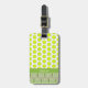 Tennis balls create a bright polka dot pattern on a white background, with a separate pattern of tennis rackets. There is also a green stripe for you to personalise with a name or other text. On the back, add your preferred contact details.