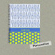 Tennis balls create a bright polka dot pattern on a blue background on both the front and the back of this notebook. On the front, tennis rackets are also used in a complementary pattern, and there is a blue stripe for you to personalise with a name or other text.