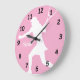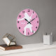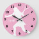 Tennis wall clock with female player silhouette. Pink or custom color background. Sporty design for tennis lovers. Personalize with custom name or quote.