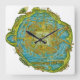 Cortez' 15th century map of the Aztec Capital Tenochtitlan on a wall clock.