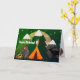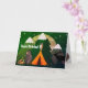 This Camping birthday party invitation features a tent, campfire, an owl, bear and a silhouette of an elk all under a stary sky with a full moon and mountains in the background. Inside Greeting ~ "Wishing You a Wild and Wonderful Birthday". The greeting can be personalized to read as you wish. - by Mountain Madness