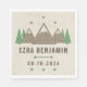 Green, ivory, and brown tent canvas style camping Bar Mitzvah personalised paper napkin. This camping themed Bar Mitzvah personalised paper napkin is perfect for a Bar Mitzvah party that you plan to host at a campground (campers can stay overnight for the party). Or it would work for a campout cookout style outdoor party at a campground or park. This design features a canvas background that is much like you'd see a camping tent made out of. It also features natural colours of green, brown, and ivory or cream. There are icons of mountains and trees and accents of arrows and stars. This camping Bar Mitzvah personalised paper napkin also works for a more glamourous glamping themed party. Great for a fan of Boy Scouts. The party doesn't have to be outdoors either, it can just be a wonderful indoor theme.