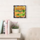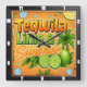 This vibrant square wall clock features bold "Tequila Lime & Sunshine" text in a lively orange and green palette. Adorned with fresh limes, a mini palm tree, and cool ice cubes against a cheerful orange background, this fun and colourful design is perfect for adding a festive, tropical vibe to any space.