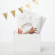 Celebrate the mum-to-be with these adorable terra-cotta rust and tan boho giraffe baby shower favour bags. Customisable, modern and gender neutral.