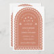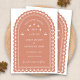 If you're dreaming of an elegant fall wedding, this save the date is for you. This romantic arch save the date features a delicate design reminiscent of blossoms and fluttering leaves. It features thoughtful touches such as a monogram with the couple's initials, beautiful typography, and a full design on the reverse side. The terra cotta colour creates a rich, earthy warmth, complementing the natural colours of the autumn season.