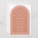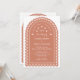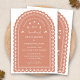 If you're dreaming of an elegant fall wedding, this invitation is for you. This romantic arch wedding invitation features a delicate design reminiscent of blossoms and fluttering leaves. It features thoughtful touches such as a monogram with the couple's initials, beautiful typography, and a full design on the reverse side. The terra cotta colour creates a rich, earthy warmth, complementing the natural colours of the fall season.