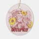 Announce the situation when you hang this lovely ornament on a door.  This decorative round ceramic ornament is adorned with a colourful flower bouquet photograph digitally altered into a terra cotta edged template design with yellow highlighted daisies.  Click "Personalise it!" to fill in the template fields with your words, remove all text or "Customise it!" to select a font style, size and colour your prefer.
