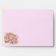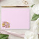 A colourful flower bouquet photograph digitally altered into a terra cotta edged design with yellow highlighted daisies fills the inside of the envelope design and the same small design sits in the lower left corner of the envelope front. Click customise to add text.