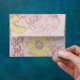 A colourful flower bouquet photograph digitally altered into a terra cotta edged design with yellow highlighted daisies at 50 percent opacity fills the outside of the envelope design and the same full opacity design fills the envelope inside. Click "Customise it!" to add text.