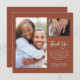 This terracotta and white card has placeholders for two sizes of pictures to thank your guests. You can use the back of the card for your handwritten message. It can be used for any occasion or celebration to show your appreciation