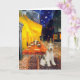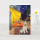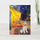 Terrace Cafe by Vincent Van Gogh, adapted to include a wire Fox Terrier. Bright, vibrant colours make this a favourite for those who love bright colours and lots of energy.