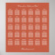 Terracotta 30 Table Wedding Seating Chart Poster, please personalise the names of the couple and the names of the guests along with any of the other text that you may wish to personalise. A stylish seating chart poster featuring elegant white text on a lovely terracotta colour background.