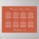 Terracotta 8 Table Wedding Seating Chart Poster, please personalise the names of the couple and the names of the guests along with any of the other text that you may wish to personalise. A stylish seating chart poster featuring elegant white text on a lovely terracotta colour background.
