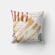 A bold throw pillow featuring a modern abstract design with brush strokes and pen marks in shades of blue and terracotta and sand.