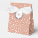 Cute terracotta and white polka dot pattern fall wedding favor box with initials and monogram, featuring a pattern of irregular white dots on soft terracotta background and a delicate laurel branch wreath frame. This trendy and cute, monogrammed favor box adds a touch of personalized elegance to your wedding reception. Fill it with treats, small gifts, or heartfelt notes to thank your guests for sharing your special day. The classic dots and personalized monogram create a memorable keepsake they'll cherish long after the celebration. Perfect for other special occasions too such as bridal showers, birthday parties, baby showers etc.