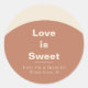 This terracotta arch formal wedding love is sweet classic round sticker is perfect for a rustic wedding. The design features a beautiful font in a terracotta background to embellish your event.