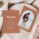 This terracotta arch photo minimalist bridal shower invitation is perfect for a rustic shower celebration. The design features a beautiful font to embellish your event.