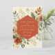 This design features a rich autumnal palette of terracotta, warm oranges, and deep greens, evoking a rustic, natural feel. Delicate botanical illustrations of leaves and wildflowers create an organic and romantic atmosphere, perfect for an outdoor or fall-themed event.