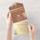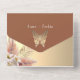 Elegant, modern, botanical, boho terracotta all-in-one wedding invitation with flowers, pampas grass, picture of the couple at the back and unique adorable gold butterfly- symbol of spiritual rebirth, hope, and life.
