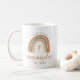 This ceramic mug features a watercolor terracotta bohemian rainbow with a heart and a cute script font. Easily change the wording for your particular needs. This makes the perfect gift for your favourite aunt or as a pregnancy announcement to your soon-to-be auntie sister.
