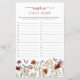 Terracotta Boho Name That Baby Game. Challenge your guests with this Name That Baby Game, a fun and engaging activity for your baby shower. The front features elegant terracotta script, guiding players to match baby names with their celebrity parents or complete classic nursery rhymes. The back is adorned with a coordinating pattern of boho butterflies, vintage wildflowers, dried grasses, and soft sage green foliage on a terracotta background, ensuring a polished and stylish look. The warm earthy tones of tan, brown, rust, terracotta, burnt orange, and muted sage green make this game perfect for any spring, summer, fall, or winter baby shower. Whether guests are trivia pros or just in it for fun, this beautifully designed game will surely bring joy and friendly competition to your celebration!
