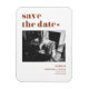 Save the date! Announce your wedding date to family and friends with the terracotta and white save the date photo magnet. It features bold typography. Personalise by adding a photo, names, date and other details. This terracotta photo save the date magnet is available in different colours and cardstock.