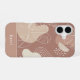 Modern boho style design features a background of organic shapes in muted shades of sand beige and terracotta clay, overlaid with tropical monstera leaf illustrations. Personalise with a name or monogram along the bottom.