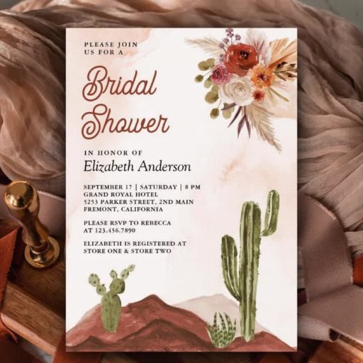 Amaze your guests with this elegant desert theme wedding Save the Date featuring a beautiful watercolor desert landscape and rustic flowers. Simply add your event details on this easy-to-use template to make it a one-of-a-kind save the date card.