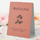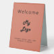 A terracotta coloured, dusty earth background, black coloured text. With the text: Welcome on the front and Closed on the back. Personalise and add your business logo and text.