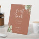 Terracotta Elegant Floral Greenery Guest Book Pedestal Sign