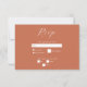 A beautiful design showcasing elegant script calligraphy typography on a terracotta burnt orange background . Perfect for anyone who loves modern minimalist designs. A stylish and trendy wedding RSVP response card design with classic elements. Matching wedding stationery items and other wedding invite formats are also available.