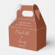 This terracotta minimalist elegant script wedding favour box can be personalised with your information in chic typography. Designed by Thisisnotme©