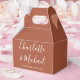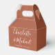 Elegant wedding favor box featuring chic signature script names and special date on a terracotta background. You can personalize with your own thank you message on the reverse. A perfect way to say thank you to your guests! Designed by Thisisnotme©