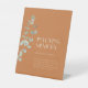 This Terracotta Eucalyptus Deco wedding in loving memory pedestal sign provides a minimalist boho, and rustic country, western, or desert theme. The simple sage green eucalyptus succulent foliage compliments the terracotta autumn background, while the art deco type combined with the botanical greenery and burnt orange backdrop creates a versatility to combine with other coloured products from this collection. These colour combinations are sure to wow the guests invited to and attending your marriage celebration.