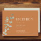 This Terracotta Eucalyptus Deco wedding reception details enclosure card provides a minimalist boho, and rustic country, western, or desert theme. The simple sage green eucalyptus succulent foliage compliments the terracotta autumn background, while the art deco type combined with the botanical greenery and burnt orange backdrop creates a versatility to combine with other coloured products from this collection. These colour combinations are sure to wow the guests invited to and attending your marriage celebration.