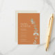 This Terracotta Eucalyptus Deco wedding schedule enclosure card provides a minimalist boho, and rustic country, western, or desert theme. The simple sage green eucalyptus succulent foliage compliments the terracotta autumn background, while the art deco type combined with the botanical greenery and burnt orange backdrop creates a versatility to combine with other coloured products from this collection. These colour combinations are sure to wow the guests invited to and attending your marriage celebration. Add more on the back for a timeline packed with even more events and information for your guests.