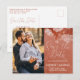Announce your upcoming wedding in elegant autumn style with this terracotta floral Save the Date postcard. A modern script highlights “Save the Date” beside your favourite photo, while delicate hand-drawn cosmos flowers add a romantic touch. Perfect for fall weddings, this two-sided postcard design includes your names, date, and location on the front, and space for a personal note and address on the back. Personalise instantly for your rustic, boho, or outdoor celebration.