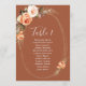 These Fall Boho Floral Table Number Seating Charts are perfect for a rustic style wedding. Personalise with your table numbers and guest names. The design features watercolor roses in terracotta, rust and blush pink with gold accent oval frame on a terracotta background.
