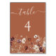 Terracotta Fall Wildflower Wedding Table Number