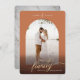 Terracotta Finally Getting Married & Window Photo with Marble Look back Side. These Save the Date Cards are elegant trendy and soo chic, with dark fading ombre gradient overlay to highlight your text, and gold handwriting script font with tails. Personalise it with your photograph. Shown in faux gold foil lettering. - Wedding Save the Date custom photo cards!