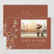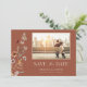 Terracotta Boho Photo Save The Date. This stylish & elegant wedding save the date features gorgeous hand-painted watercolor wildflowers arranged as a lovely bouquet perfect for spring, summer, or fall weddings. Find matching items in the Terracotta Boho Wildflower Wedding Collection.