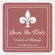 Elegant and simple Wedding Save the Date Stickers featuring a fleur de lis against a terracotta background. This design is a unique choice for announcing a modern wedding. Easy to customise with your wedding details. Click "Customise It" to find more personalisation options.