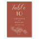 Terracotta Floral Elegant Wedding Reception Table Number