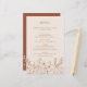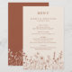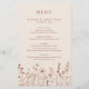 Add charm to your reception tables with this terracotta wildflower wedding menu card. Featuring delicate autumn florals and a clean layout, it’s perfect for rustic, outdoor, or barn weddings. Customise with your food and drink details to suit your big day.