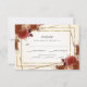 This elegant RSVP card features beautiful dark terracotta and rust coloured roses accented with a faux gold glitter frame. This design offers meals choices.
