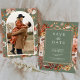 Amaze your guests with this elegant save the date featuring beautiful earthy flowers and dried leaves. Simply add your event details on this easy-to-use template and adorn this card with your favourite photo to make it a unique personalised one-of-a-kind save the date card.