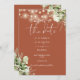 This elegant terracotta greenery floral string lights save-the-date invitation can be personalised with your information in chic typography with your wedding website QR code and details on the reverse. Designed by Thisisnotme©