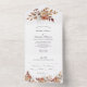 A beautiful floral design with browns, peach and rust in an all in one wedding invitation. Your guests can tear off the RSVP card and mail it back. All fields are editable.