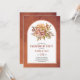 Terracotta flowers and pumpkin fall engagement party invitation. This lovely wedding design features an arch frame on terracotta stained background. In the frame there is a bouquet of terracotta flowers and a pumpkin.